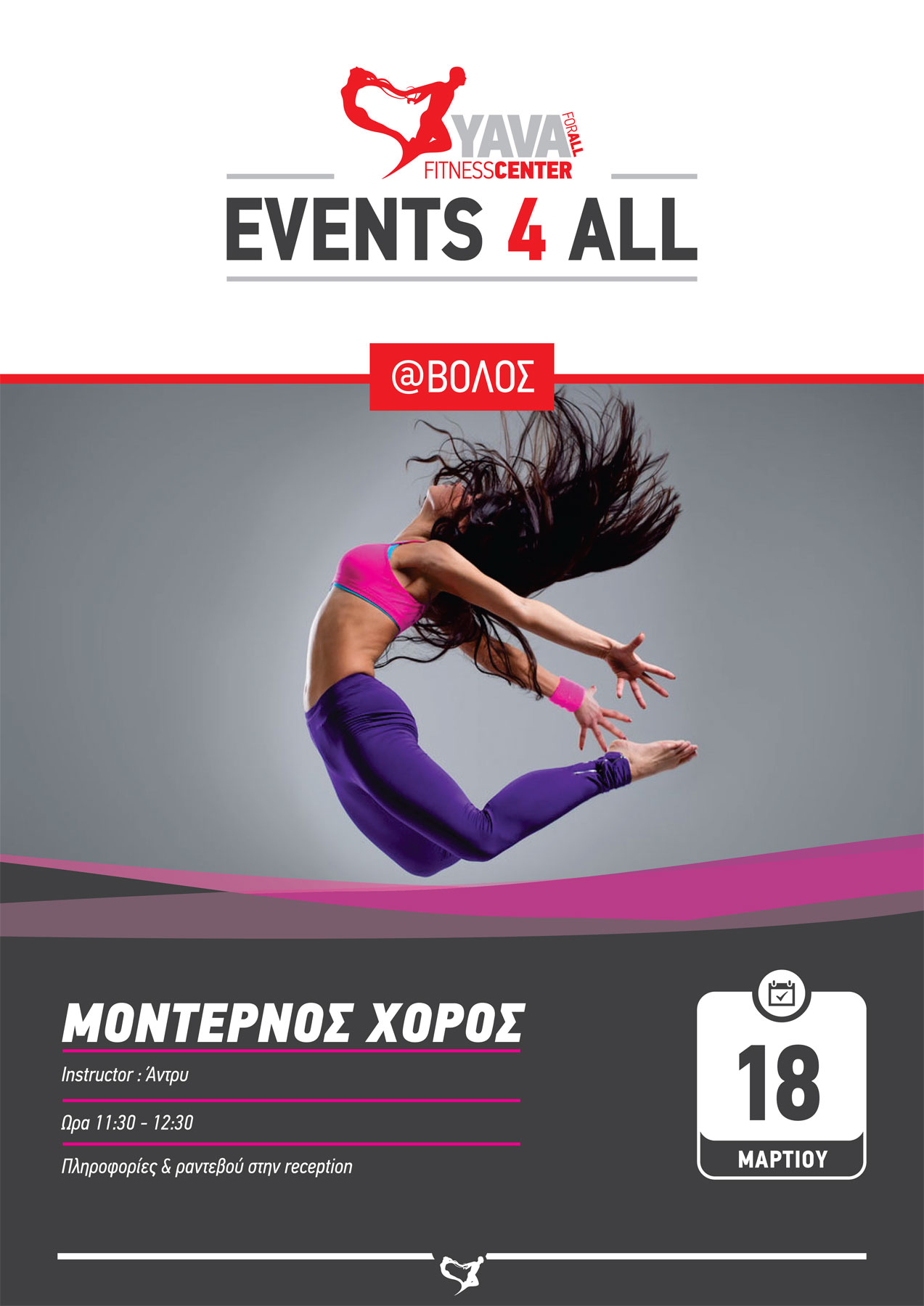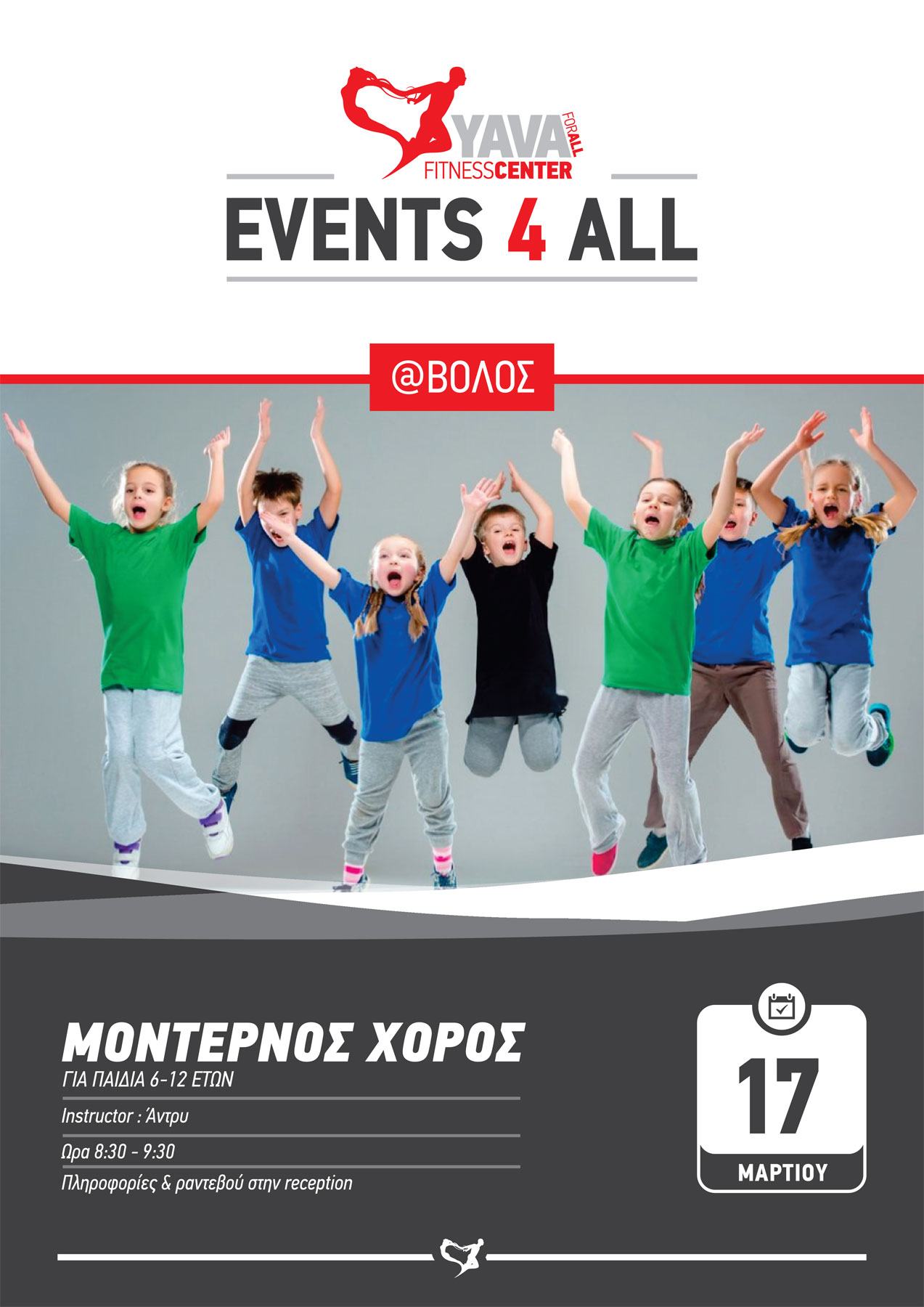 Τα παιδιά λατρεύουν τον χορό γιατί τα βοηθάει να εκτονωθούν, να εκφραστούν και να γυμναστούν! Για το λόγο, αυτό το Yava Βόλου διοργανώνει ένα super dancing event Μοντέρνου Χορού στις 17 Μαρτίου, ώρα 8:30 με 9:30 όπου οι μικροί μας φίλοι (6-12 ετών) θα έχουν...