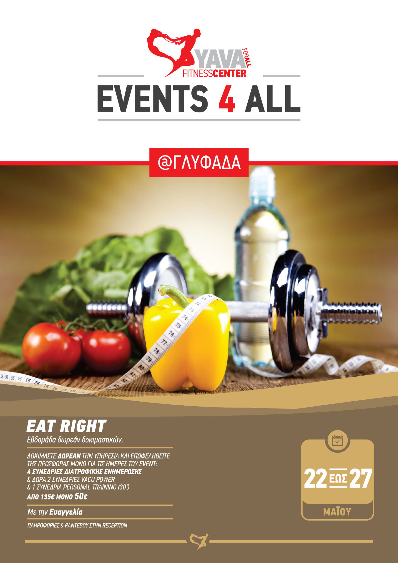 Οι έμπειροι διατροφολόγοι των Yava σας βοηθούν να χτίσετε ένα υγιές και όμορφο σώμα μέσα από ένα super event!