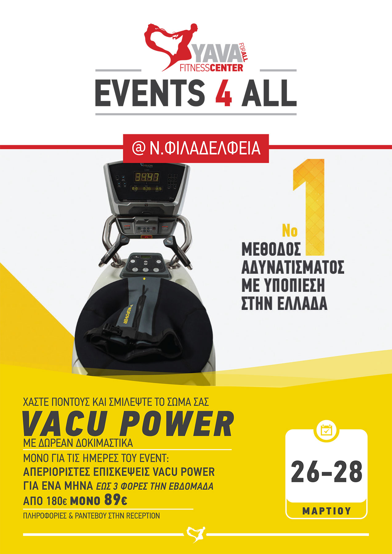 Τα YAVA Ν. Φιλαδέλφειας φέρνουν τη μοναδική μέθοδο αδυνατίσματος με υποπίεση, Vacu Power! Έλα τώρα από τις 26 μέχρι και τις 28/03 και δοκίμασέ την δωρεάν! Ανακάλυψε τον νέο τρόπο που θα αλλάξει το σώμα σου και επωφελήσου από την προσφορά για έναν μήνα Vacu Power...