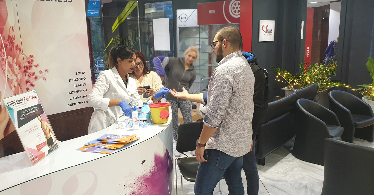 Με αφορμή την Παγκόσμια Ημέρα κατά του Σακχαρώδους Διαβήτη, τα Υava Fitness Centers σε συνεργασία με την Αστική Μη Κερδοσκοπική Εταιρεία «Με Οδηγό τον Διαβήτη», πραγματοποίησαν την Τρίτη 12 Νοεμβρίου στο γυμναστήριο του Νέου Ψυχικού, δωρεάν μετρήσεις σακχάρου για τα μέλη του δικτύου αλλά και για το προσωπικό.