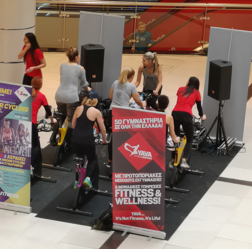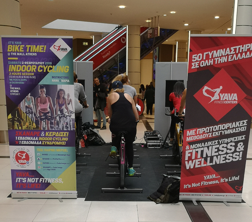 Από το Σάββατο το μεσημέρι στο μεγαλύτερο εμπορικό κέντρο της Αττικής, σε έναν ειδικά διαμορφωμένο χώρο, οι πολίτες είχαν την ευκαιρία να ενημερωθούν με διαδραστικό τρόπο από έμπειρους γυμναστές και στελέχη των Yava Fitness Centers για τα οφέλη του Indoor Cycling.