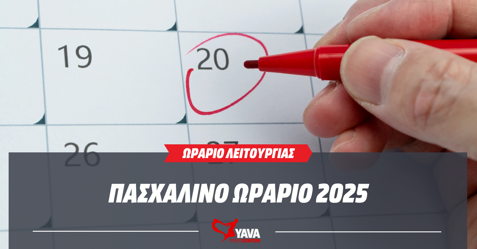 Αγαπητά μας μέλη, Παρακάτω μπορείτε να δείτε πώς διαμορφώνεται το Πασχαλινό ωράριο των γυμναστηρίων Yava, για να προγραμματίσετε τις προπονήσεις σας! Μ. Παρασκευή, 18/04 και Μ. Σάββατο 19/04 Λειτουργούν όλα τα γυμναστήρια με ωράριο 10:00-18:00. Κυριακή του Πάσχα, 20/04 και Δευτέρα του Πάσχα, 21/04 Τα γυμναστήρια θα παραμείνουν κλειστά. Το ωράριο...